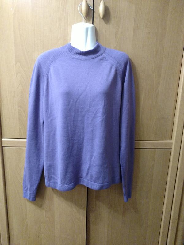 Мягкий теплый,шелковистый гольф под шейку,абсолютно новый,но с дефектом,на плече есть дырочка-зацепка,на фото указала,кто умеет,можно до не заметности заделать.Цвет,как на последних фото.Полуобхват подмышек,спокойное,не растянутое состояние 60см,рукав реглан,длина от ворота 76см,длина кофты 61см.Размер стоит л,идет на хл