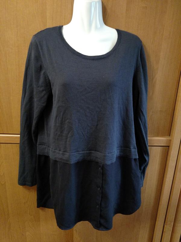Очень красивая кофта,тоненькая шерсть,красивого темного приглушеного фиолетовосерого цаета цвета,верх мерина шерсть,низ полиэстер