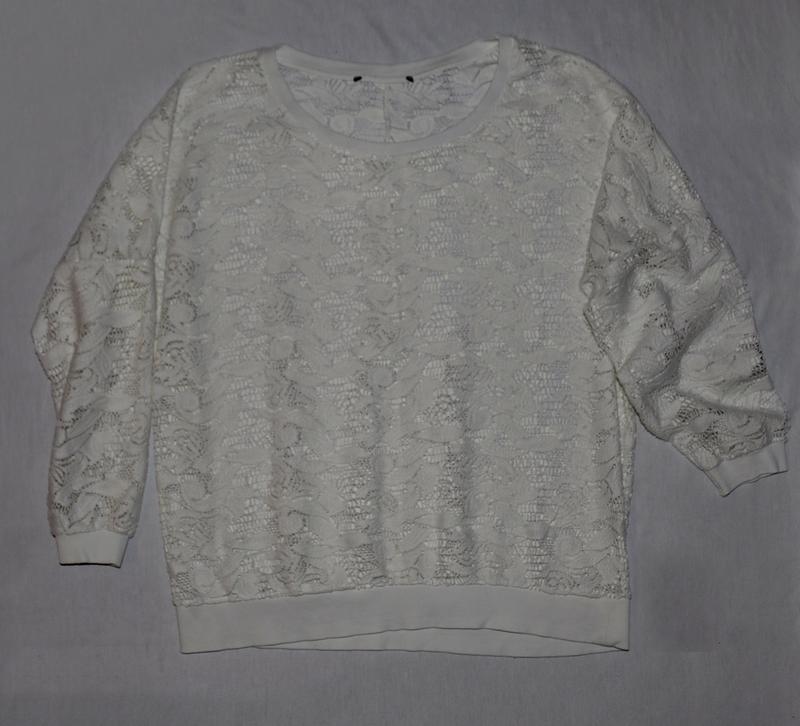 Белая гипюровая кофта. Фасон - Летучая мышь. Длина 56 см, длина рукава от горловины 53 см. Ширина от подмышек 56 см, ширина внизу 43 см.