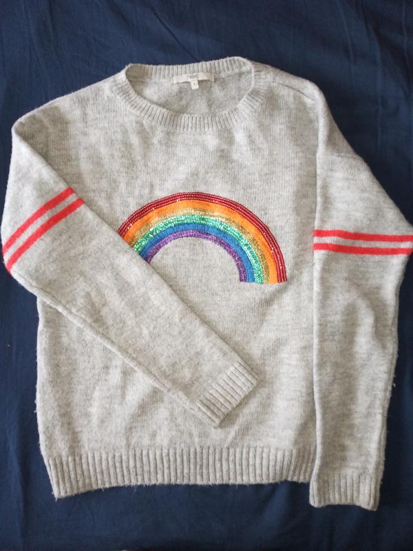 Теплый и уютный свитер с радугой. ПОГ 50 см Плечи 52 см Рукав 50 см Длина от плеча 55 см