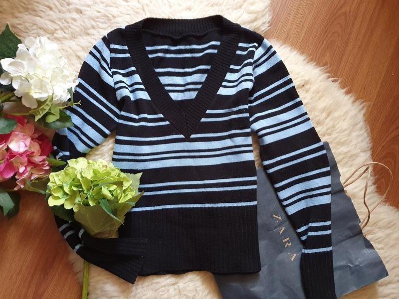 Тёплая базовая кофта в полоску, размер М, модный V вырез, состояние очень хорошее🌹