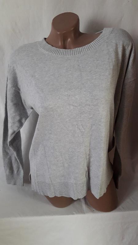 Приємний до тіла джемпер. Колір світло-сірий. Без дефектів. Розмір Л. Орієнтуйтеся на заміри . Довжина 57 рукав від горловини 66 ПОГ 48-51 Запитуйте буду рада відповісти на всі ваші запитання!!!