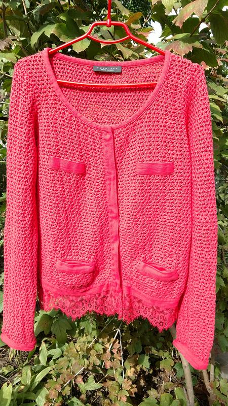 Очень классная хлопковая кофта , на кнопках. Внизу красивое кружево в тон кофты. цвет кораловый