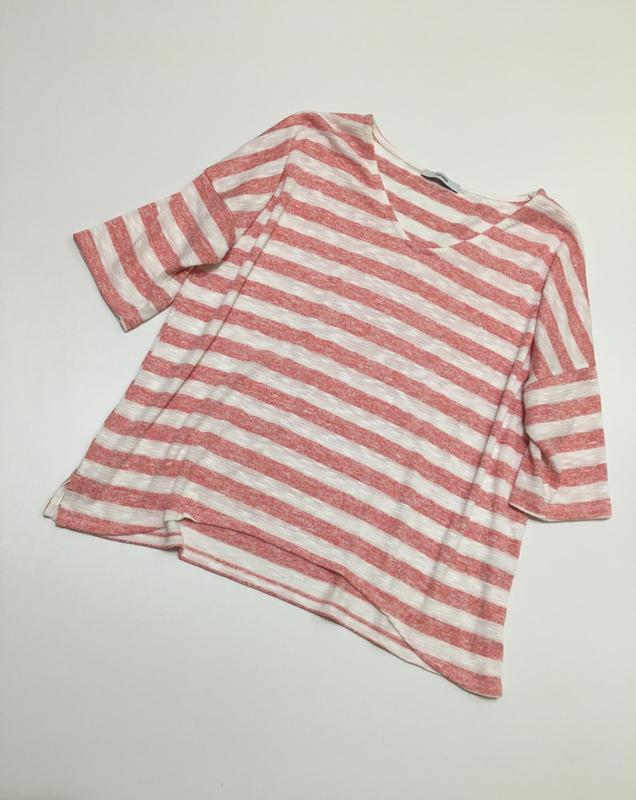 Полосатий джемпер вільного фасону в дуже хорошому стані, тканина 49%поліестер,48віскоза,1 еластан. Розмір Uk 14 ,eur 42 { на XL}. Заміри на фото.