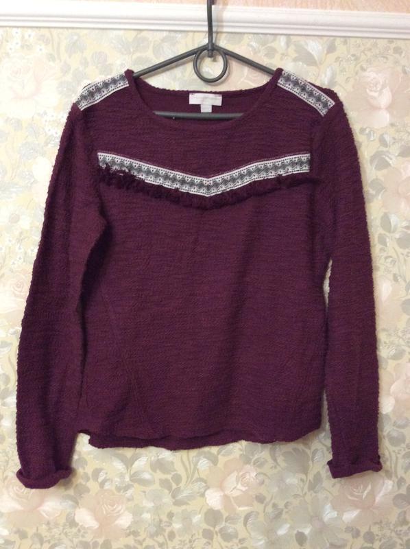 Джемпер сливового цвета Charles Vogele с орнаментом, очень приятный к телу. Размер S. По замерам длина изделия от плеча до низа 57 см, длина рукава 56 см, полуобхват груди 46 см.