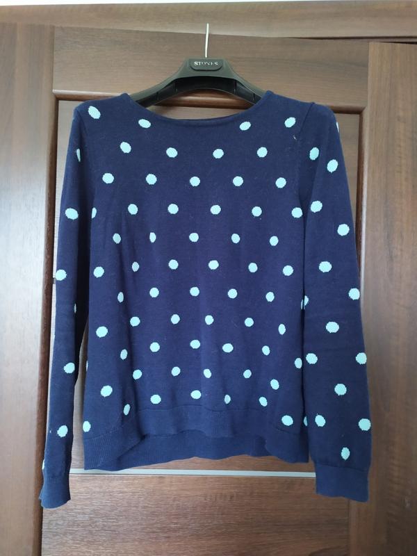 Кофточка темно синего цвета в зелёный горох 60% коттон 40% вискоза