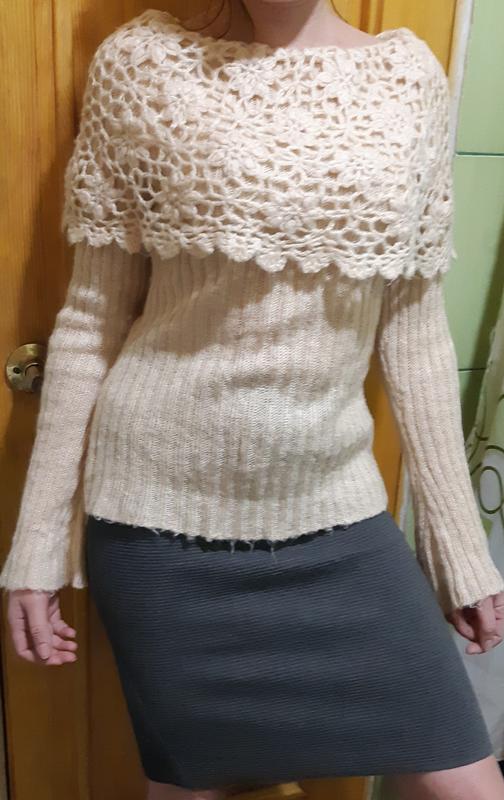 Теплый очень красивый пудровый свитерок. Рукав слегка расклешенный. Длина 55см ПОГ 42-70см Рукав по внутреннему шву 48см