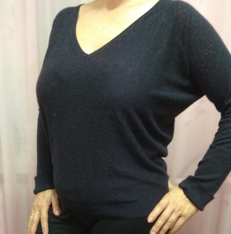Легкий и мягкий вискозный джемпер с люрексовой ниткой, темно синего цвета.