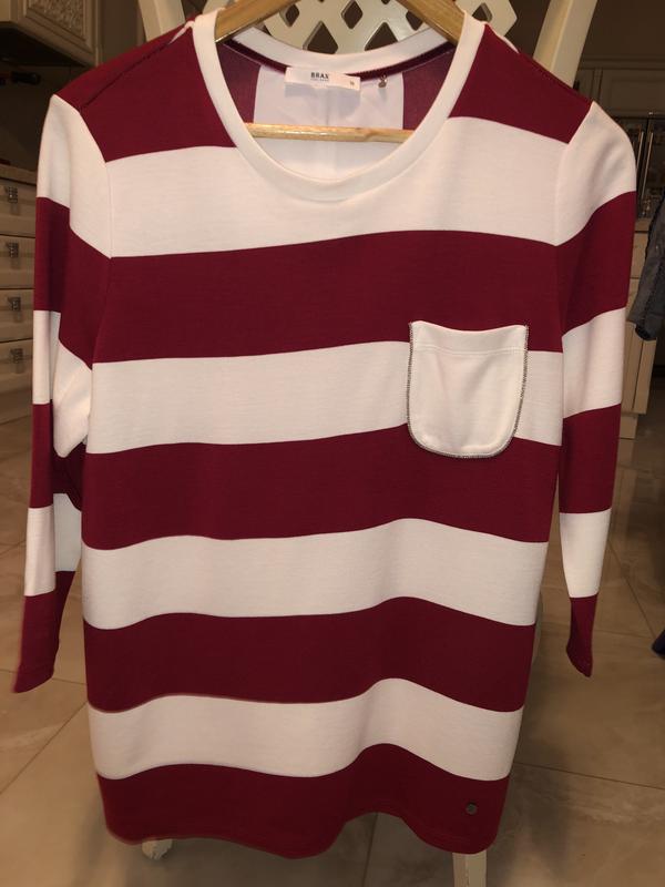 Интересного кроя свитер, с рукавами 45 см, и оборкой на спине. Размер 38. Состав ткани: 85% вискоза, 10% полиэстер, 5% эластан. Ткань оборки- 100% полиэстер.