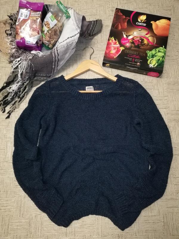 Красивый джемпер с красивой пряжи, вязаная кофточка глубокого-синего цвета Бренд: ONLY (Дания) Бирочка с информацией о составе и размере, к сожалению, обрезана Размер: 40/L/48 (смотрите замеры) Длина от плеча: спереди 64 см., сзади 69 см. ПОГ: 50+ см. ПО по низу: 49+ см. Длина рукава от горловины: 69 см. Состояние: идеальное, без дефектов! Способ доставки: Новая почта, Укрпочта Оплата: Предоплата на картсчет Приватбанка 100% стоимости товара Обмен и возврат не предусмотрен, поэтому покупку, пожалуйста, делайте обдуманно! С удовольствием отвечу на все ваши вопросы!