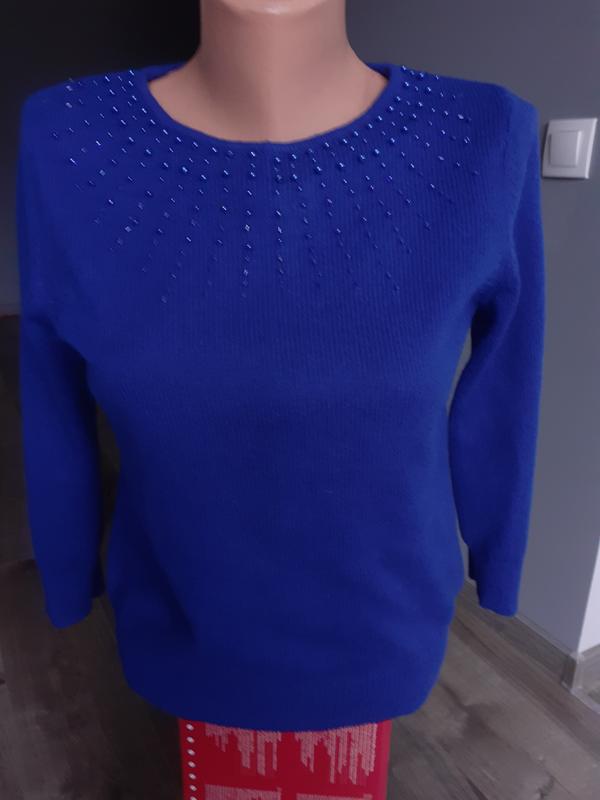 Нежный,очень красивого синего цвета короткий джемперок . Замеры: длинна 49, ширина под мышками 45, плечи 36, длинна рукава от плеча 47