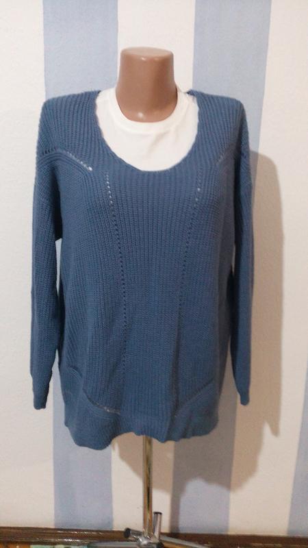 На останньому фото показала,внизу біля розрізу,трохи світліша нитка,в носінні зовсім не видно( в ціні враховано),стан нового.Розмір вказано ХЛ,але підійде і на більші. Плечі спущені Пог-62-70( тягнеться) Поб-62-70 Рукав-70 ( від виріза, повноцінний,довгий) Довжина- 65-68- ( перед)-70-72( зад) Без торгу