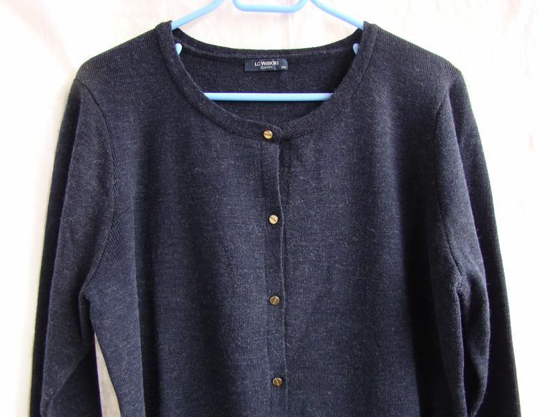 новая классическая кофта, размер XXL, обрезаны бирки (не подошел размер), цвет темно-темно серый. Замеры: длина плеча 12 см, длина рукава 60 см, длина по спинке 64 см, ширина между проймами 54 см, ширина внизу 54 см.