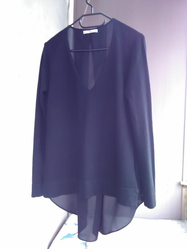 Комбинированный свитерок ZARA.Впереди свитерок-взади шифоновая спинка. Длина-61/80см, пог-51см, плечи-39см, рукав-60см. Бирочка срезана с составом. Указан размер М.