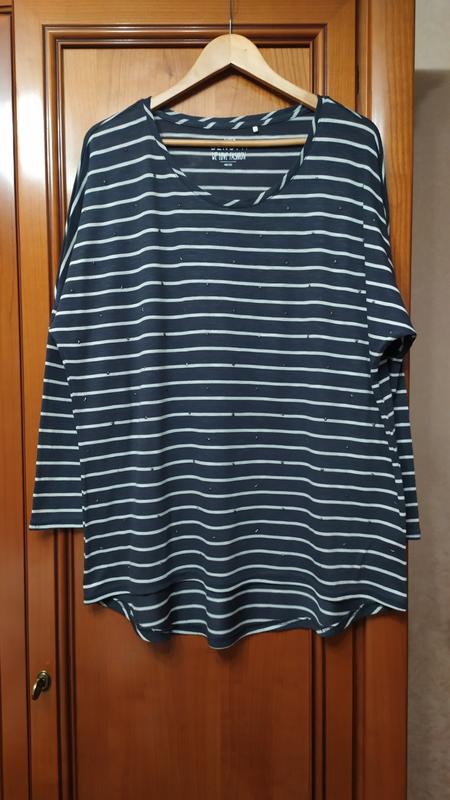 Тонкий вязанный трикотаж. По переду украшен металическими звездочками. Занижена линия плеча. ПОгруди-68см,ПОталии-64см, ПОниза-69см,Плече+рукав-71см, Длина переда-74см, Длина спинки-83см.