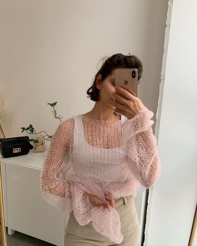 Повітряна павутинка оверсайз. Легка, ніжна, підходить для чутливої шкіри , не коле і не викликає роздратування. У складі кід мохер і шовк.