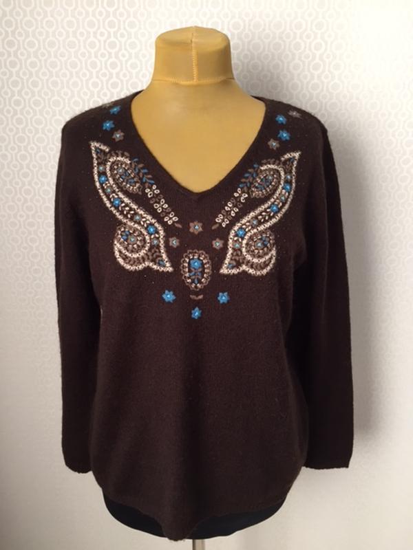 Красивый джемпер шоколадного цвета с декором от basler, размер примерно xl-xxl