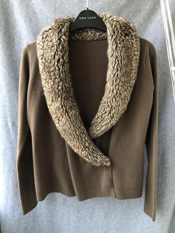 Червона кофта з хутром. Внизу на заклепках. Підійде на s/m. Довжина виробу 47 см. Ширина плечей 35 див.