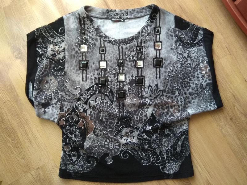 Джемпер с камушками, очень нарядный, с широкими проймами-рукавами, лучше поддуют тонкий гольфик.Высокое качество, производства -Турция Замеры:пог-45-55см,пот-49см,длина-65см,обхват рукава-32см.тканья мягкая,типа-трикотаж.Размер универсальный 46-50(р-р)