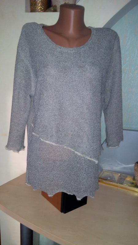 Джемпер женский с рукавом 3/4 цвета льна. Брала в Стоке, к сожалению все бирки обрезаны, но мне очень понравилась сама идея. Перед джемпера двойной. Длина 70см., ПОГ 55 см., по низу переда 61 см.