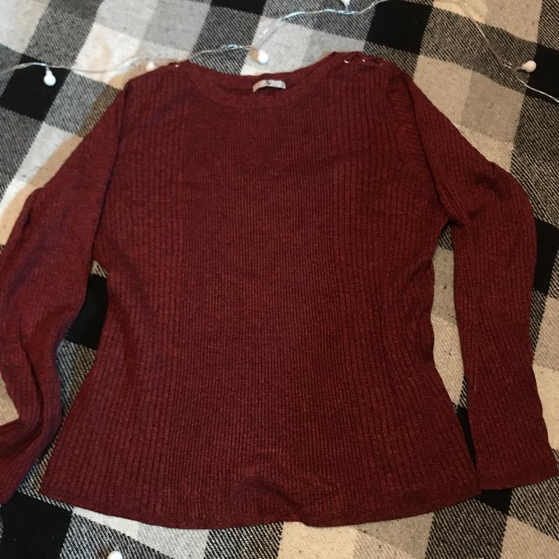 Замечательная кофта в рубчик насыщенного цвета. На плечах имеются декоративные веревочки. Состояние идеал. Предоставлю любые доп. фото и замеры в сообщениях.