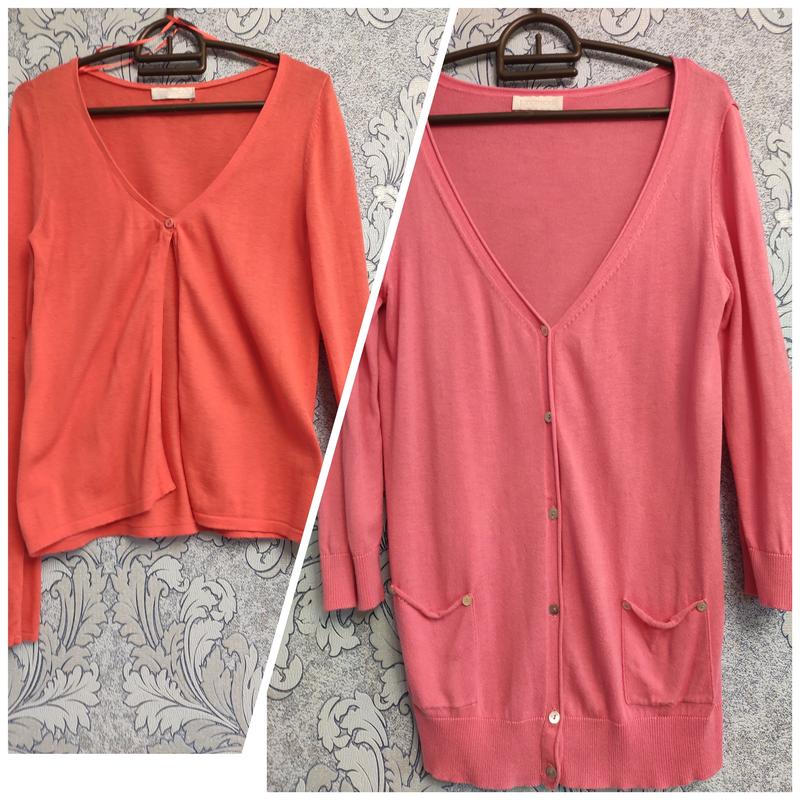 Продам кофты французской марки Promod, цена указана за два кофты (50 грн). Размер М, в хорошем состоянии, цвет: 1) коралл, 2) розовый. Замеры: обхват груди (см) 86-92, обхват талии (см) 67-73. Первая коралловая кофточка, с одной пуговкой, длина кофты 56см. Вторая - розовая, на пуговках, впереди два кармана, рукав 3/4, длина кофточки 65см. Отправлю НП или УкрПочтой.