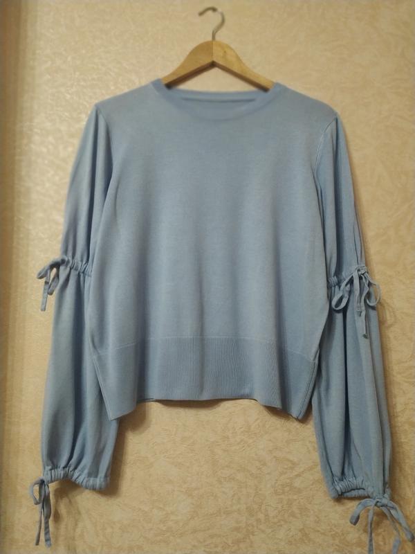 Укороченная модель. Интересные утяжки на рукавах. ПОгруди-58см, ПОниза-54см, Длина рукава от горловины-74см, Длина-55см.