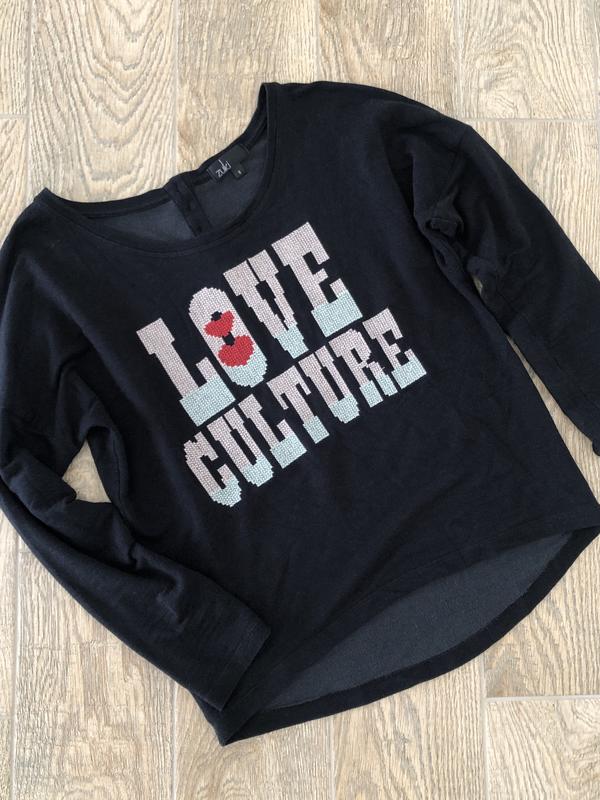 Чёрная кофта с стильной вышивкой на груди❤️Спущенный шов на плечах выглядит очень красиво и модно ⚡️ Размер подойдёт на XS-M. Качество и состояние очень хорошее, есть минимааальные катышки