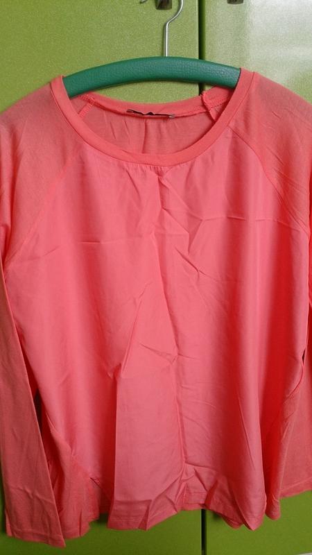 Спереди вставка плотного шифона,цвет абрикосовый. Длина 63 см, в полуОг 55 см, рукав от горловины 72 см.