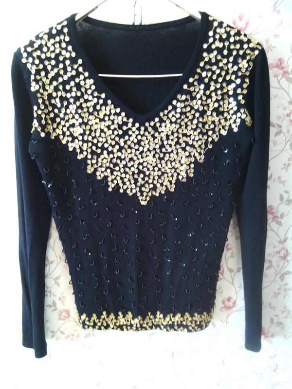 В хорошем состояние, блестки все на месте . Размер 48-50,хорошо тянется.