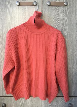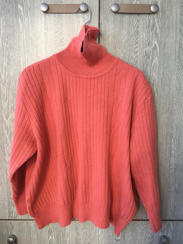Длина 57см, ширина под руками 62см, рукав 3/4-48см, плечи 46см. Бирки нет, на ощупь приятная шерсть. Цвет коралл. Без дефектов. Без торга.