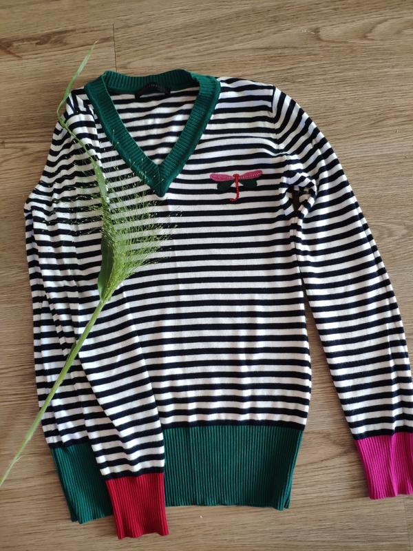Джемпер в полоску, манжеты разного цвета, слева вышивка стрекоза, очень оригинальный и приятный к телу, состояние идеальное, Турция