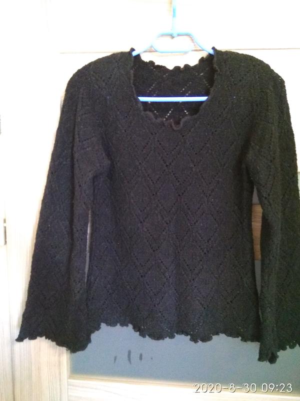 Очень мягкий, приятный, не колется. Длина по спинке 55 см, длина рукава 55 см
