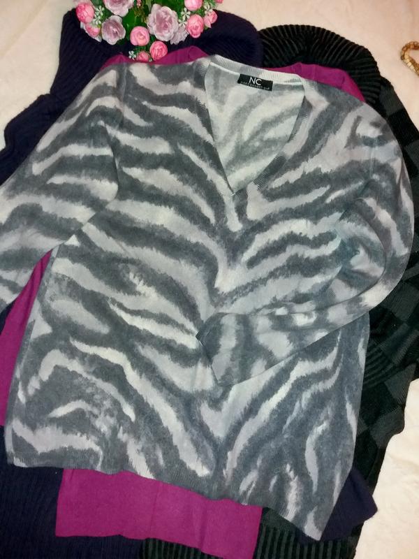 Мягкий и пушистый джемпер с звериным принтом,вероятно кашемир,48-54разм.,nc.