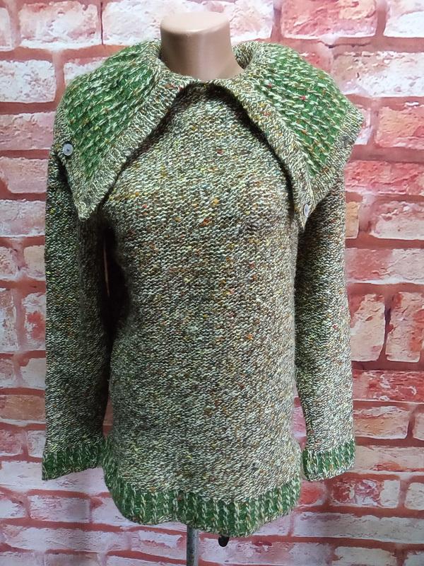 Джемпер полушерсть вязаный ворот-хомут винтажный 80-90е Материал смесовая шерсть, вязка средней плотности. Ворот можно носить в разных вариантах Замеры (см): плечи - 50, подмышки - 51, длина по спине (без воротника) - 73, рукав от плеча - 63, плечо - 16 Состояние: очень хорошее, следы носки абсолютно незначительные