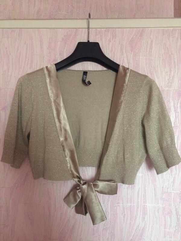 Цвет золотистьій, завязки- атласная лента. Подойдет и на S и на L