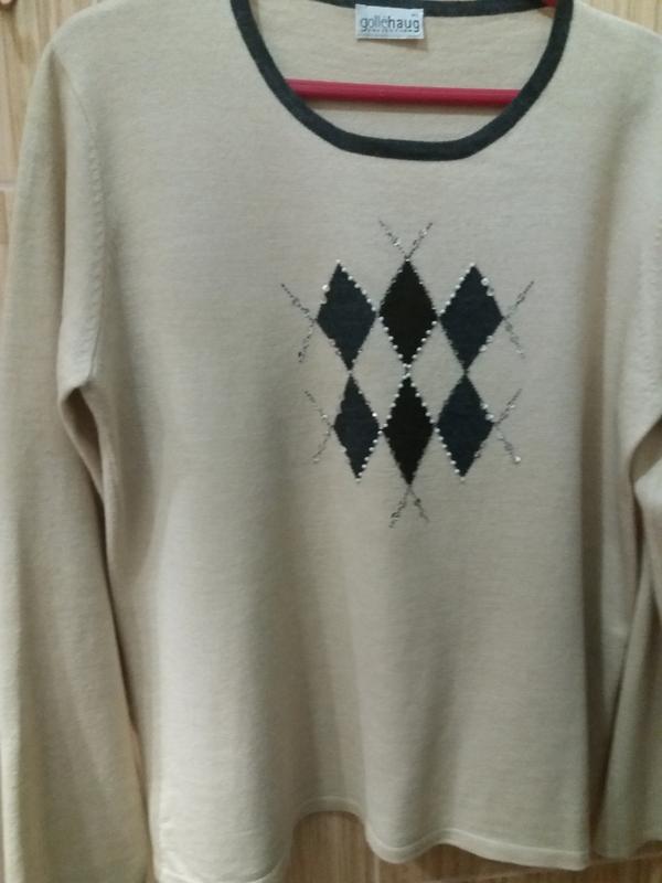 Джемпер телесного цвета . Состав : шерсть - 50%, акрил - 50%. Длина - 64 см, ПОГ - 56 см. ПОБ - 58 см. Длина рукава - 61 см.