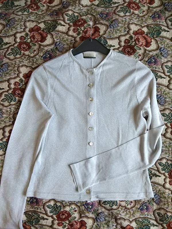 Кофточка легенькая, с блестящими серебристыми ниточками.