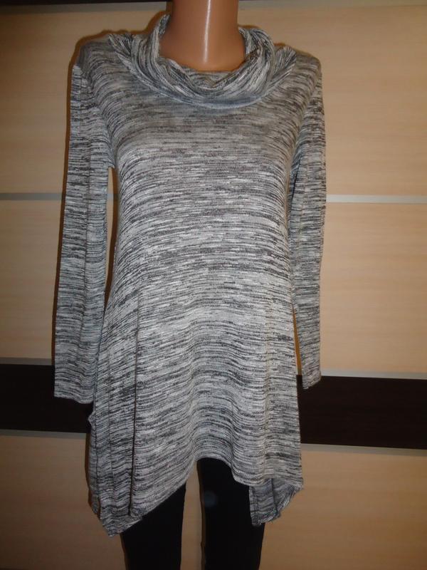 Указан размер S 54% вискоза, 42% полиэстер, 4% эластан Длина - 65см, сзади - 67см, сбоку до 78см ПОГ - 40-48см ПОТ - 47см Рукав - 40,5см, от лпеча - 52,5см