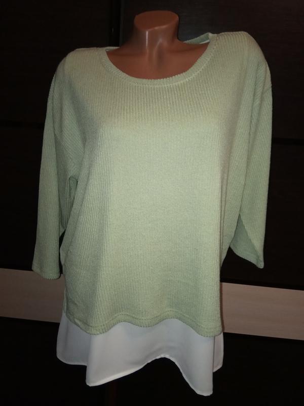 Хорошенькая вещичка, очень нежная. Цвет оливковый. Есть вискозная подкладка (маечка) - низ шифоновый, длинее кофточки. Замеры сняты по подкладке. ОГ 104-114 см ОТ 112-118 см ОБ 126 см Рукавчик от горловины 50 см Длина 70 см