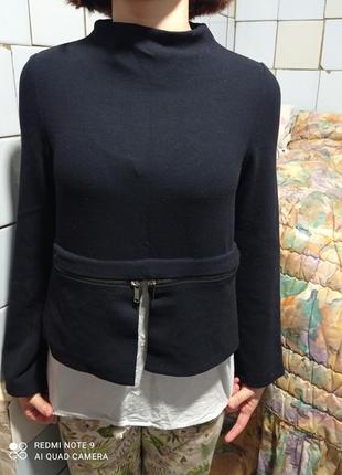 Кофта с имитацией рубашки отлично дополнит любой образ (брюки или джинсы).На талии замочек, который позволит Вам выбирать как носить кофту.Сзади застегается на скрытую молнию,рукав к низу немного расклешен.Состояние отличное.Размер XS. Ориентируйтесь на замеры. Замеры:ПОГ-42см,ПОТ-43см,ПОБ-47см,плечи-33см,рукав-55см,горловина-19см;длина спереди-66см, сзади-71см. Пересылка.