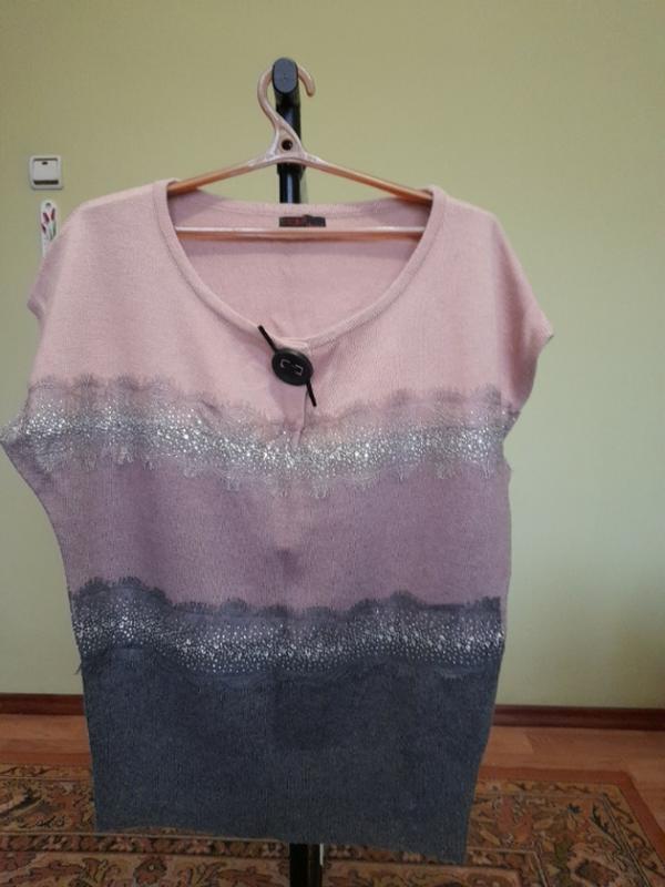 объёмный джемпер хорошего качества.Хорошо смотрится с тонкой водолазкой. Длина 70см.