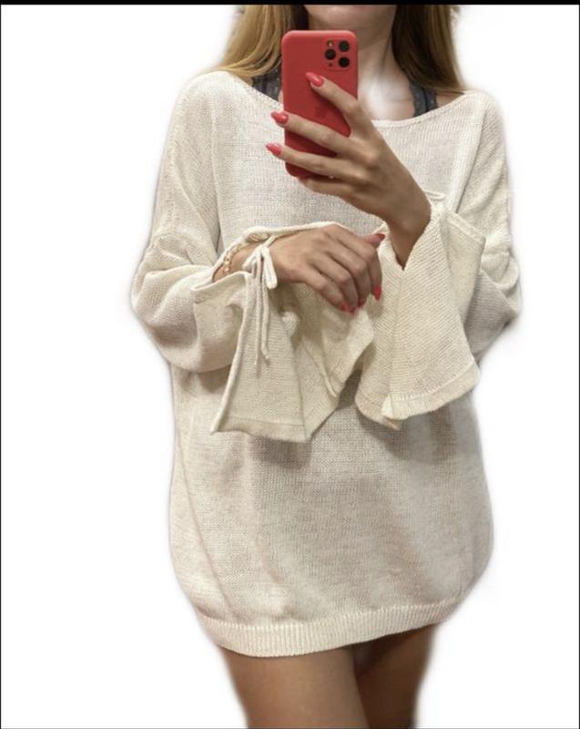 Замечательный состав. Красивый цвет. Благородный слегка заметный блеск. Оригинальный рукав. Размер указан xl но можно и на меньший как оверсайз Длина 68, пог 70, полуобхват по низу 56, рукав с плечом 78