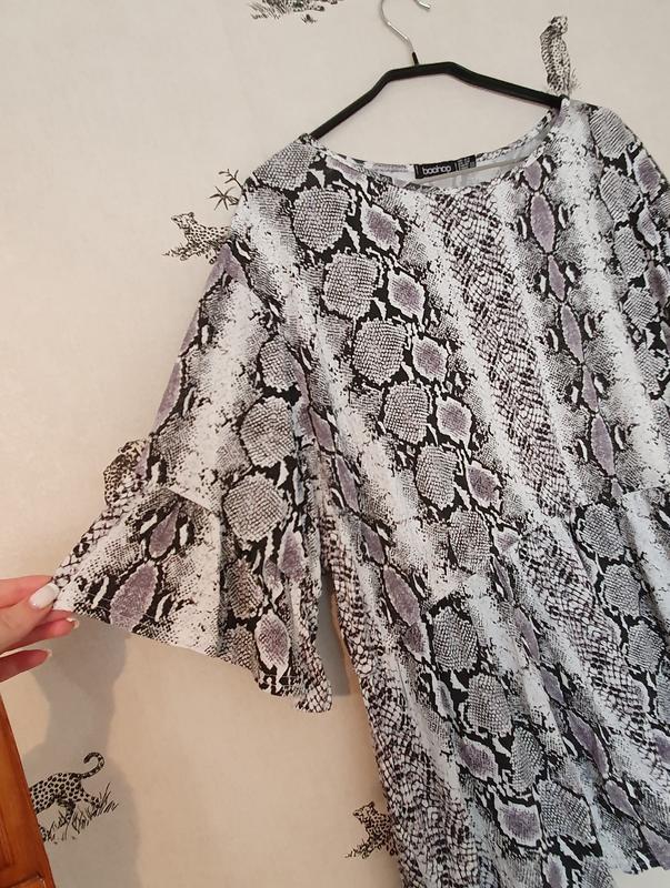 классная туника в змеиный принт в отличном состоянии, смотрится бомба указан размер 50-52 но я носила на С-М под поясом,очень стильно фирменная