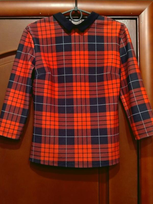 Кофта клетка с рукавом 3/4. Хорошо тянется.