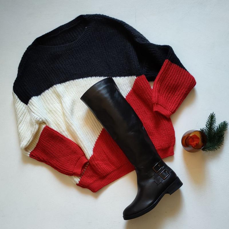 Джемпер трехцветный, прямог кроя, 50 % шерсть, 50 %акрил, размер универсальный, производство Ьурция