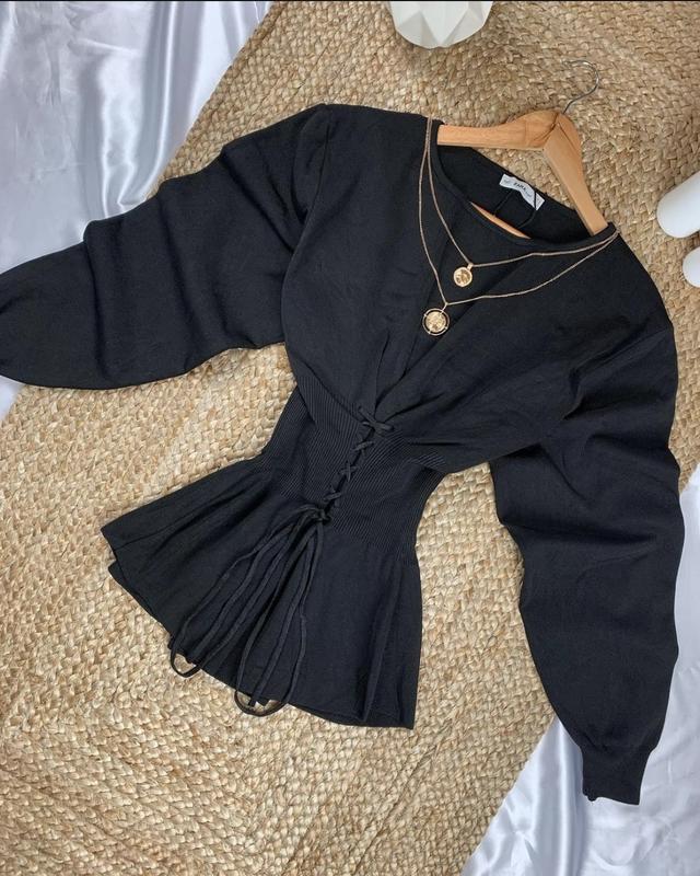 Шикарный джемпер с корсетом на завязках😍 Обьемные рукава. Ткань вискоза. Размер М. Замеры: пог 44, Длина изделия 79, Длина рукава 63, Плечи 49 см. Талия регулируется завязками Одет 1 раз