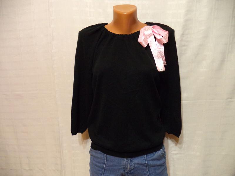 симпатичный джемпер с рукавом 3\4 тонкая машинная вязка б\у с распродаж рр 42-46 но смотрите замеры модель свободная не приталенная шейная лодочка ширина регулируется лентой и красиво вяжется в бант, ленты можно менять на ваш вкус,очень удобно всегда новая кофточка))) без дефектов катышек нет,ехала в общем тюке нужно почистить валиком липучкой длина-59см пог-44(55)см пот-42(52)см по патенту-39(55)см рукав-49см коттон-вискоза