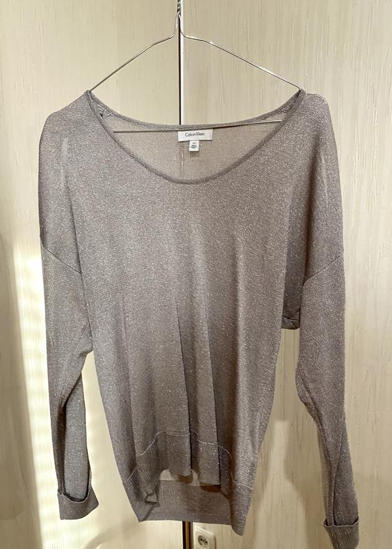 Серебристая блестящая кофточка от Calvin Klein. Размер S. На рукавах есть разрезы и серебристые пуговицы.