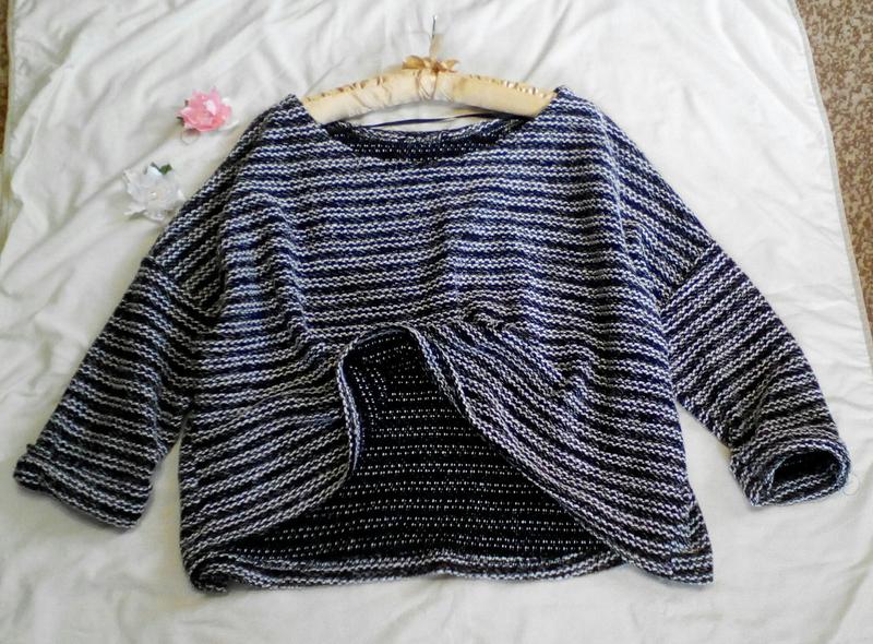 Джемпер atmosphere oversize летний вязаный летучая мышь полосатый рукав 3/4